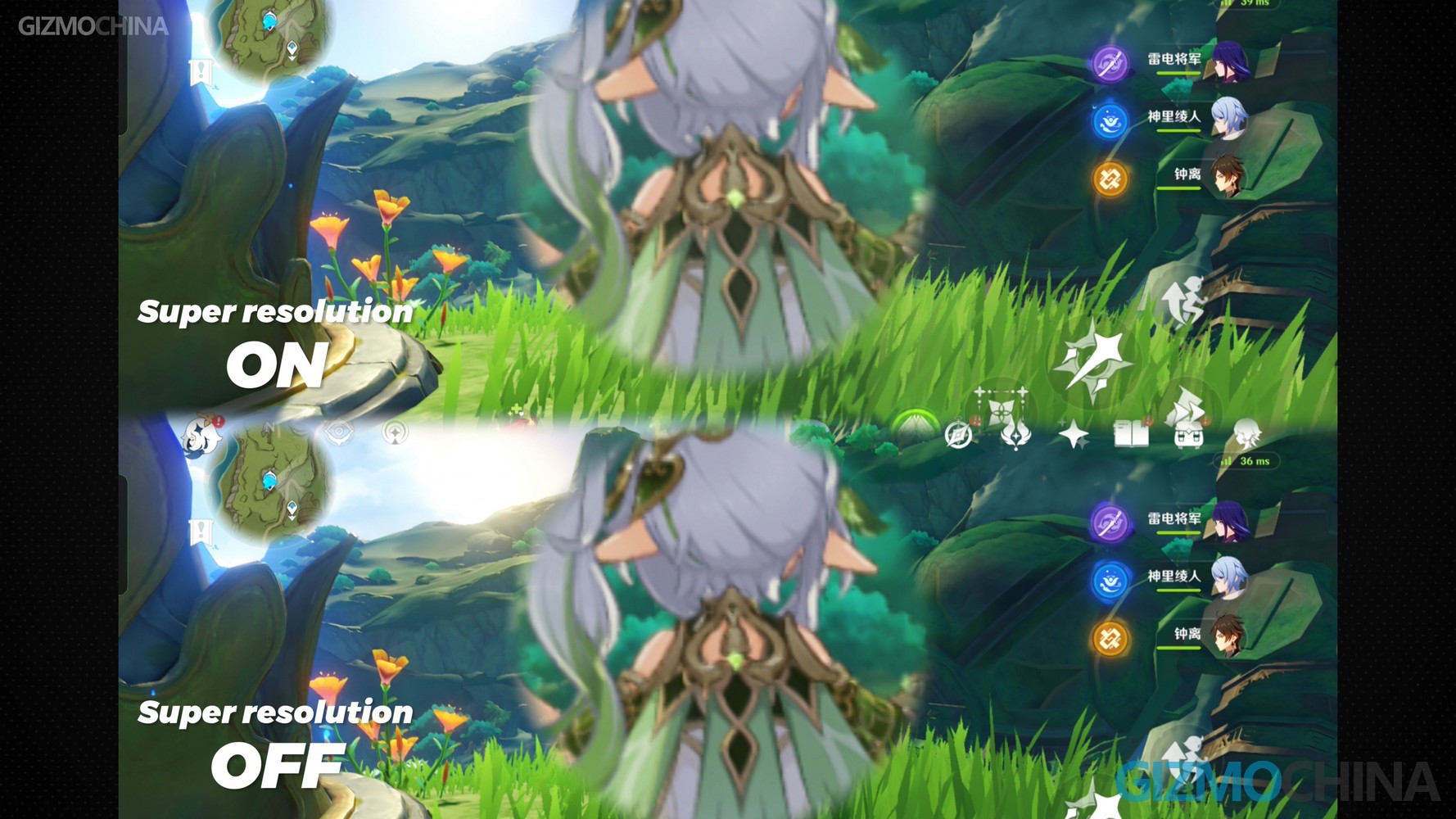 The Genshin Impact is not as stable as the iQOO 11, it is closer to the Xiaomi 13. When we turn on Ultra-steady frames mode, the frame rate is a little more stable, but the effect is not obvious, and the same goes for the Super-resolution feature. You can see a little bit of clarity in the screenshots by zooming in, but you won’t notice it when the characters are moving.