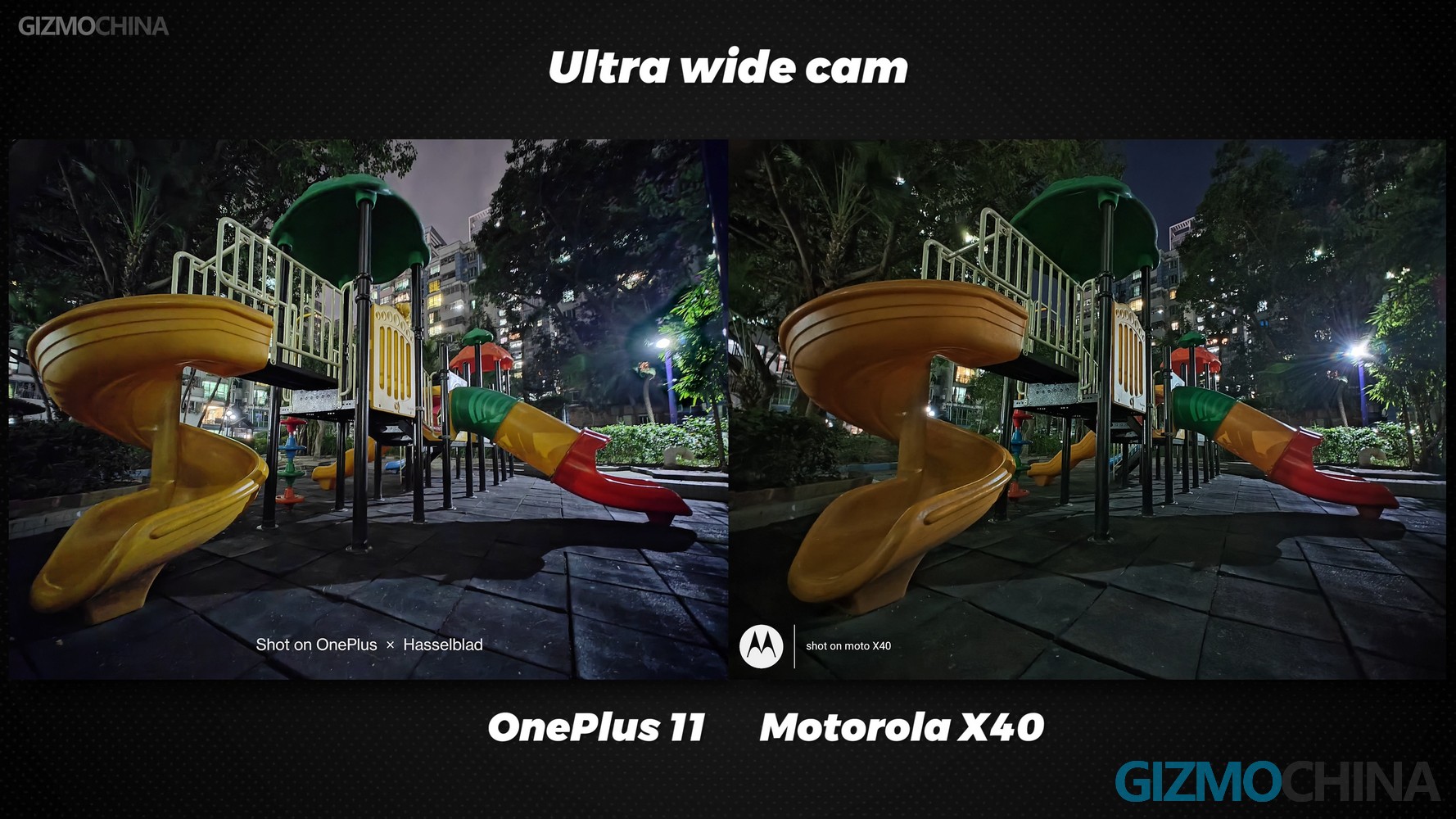 Just compare the recent models to show how good this ultra-wide camera is. iQOO 11 is definitely the worst one, and a quick glance shows how good OnePlus 11 is. The downside of Xiaomi 13 is the low dynamic range, although at the time it was just that dark. But just not good-looking. The Motorola X40 is the closest to OnePlus 11, but unfortunately, the color is not accurate enough. And the photo is overall greenish.