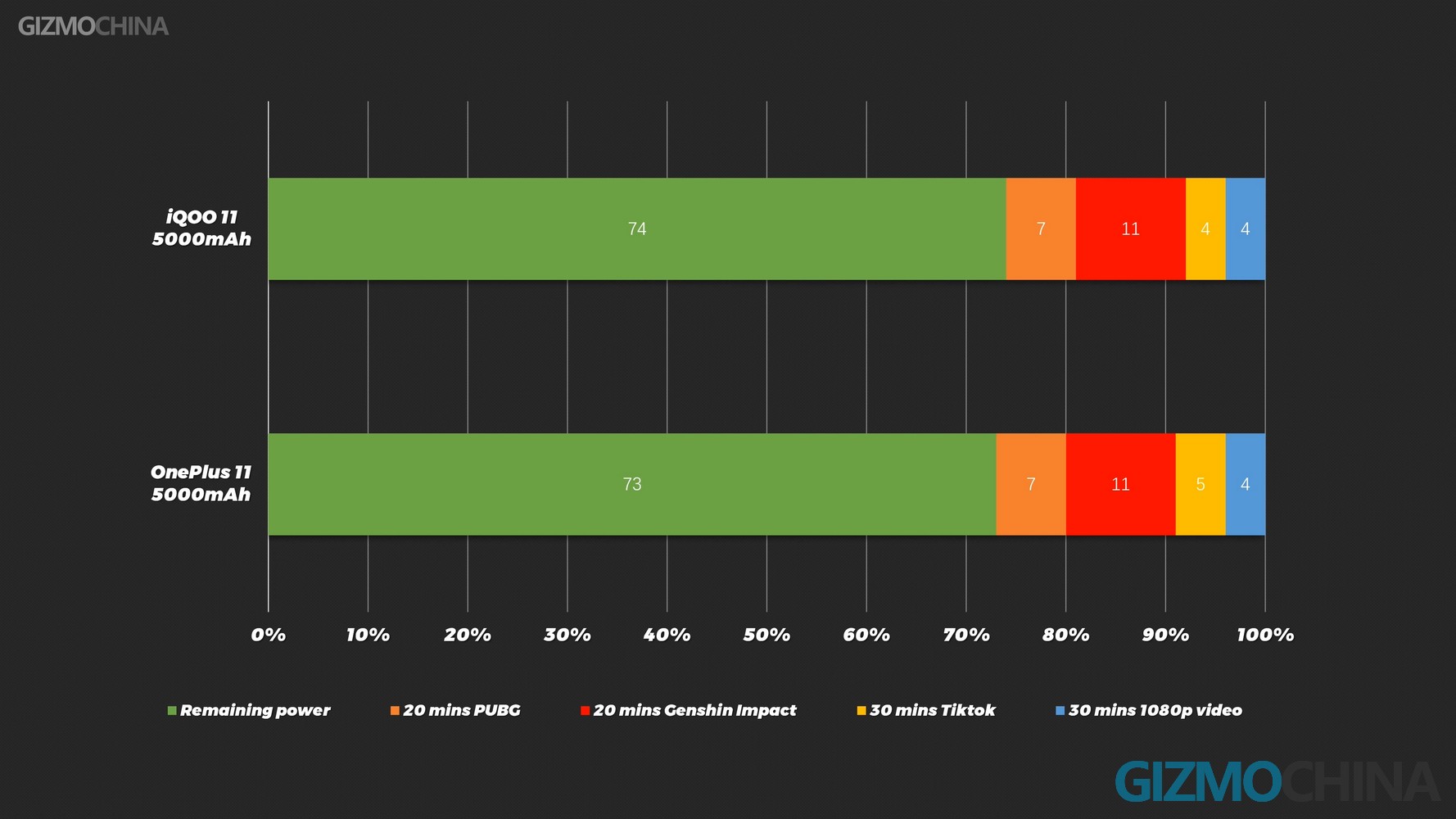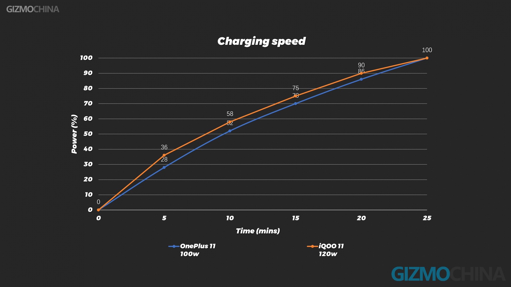 The charging power of the OnePlus 11 is not particularly high, but 100w can also meet the needs of most people. 5 minutes to charge 28%, a full charge only takes 25 minutes, the same as 120w iQOO 11. There is no wireless charging by the way. The battery life is also similar to iQOO 11. It is the regular level of an 8 Gen 2 phone.